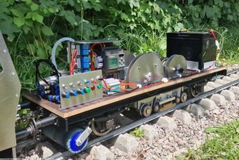 1: 14.06.2025 Er zeigte sein selbstgebauten Schienenreinigungswagen. Welcher mit 2 speziellen Reinigungsbändern versehen ist. Jede dieser Rolle ist 50m lang und Reicht weit. Diese werden vorgängig mit einer sehr stark verdünnten Ammoniaklösung Lösung benetzt wird und dann damit die Schienen gereinigt werden. Das band rollt sich selber auf.