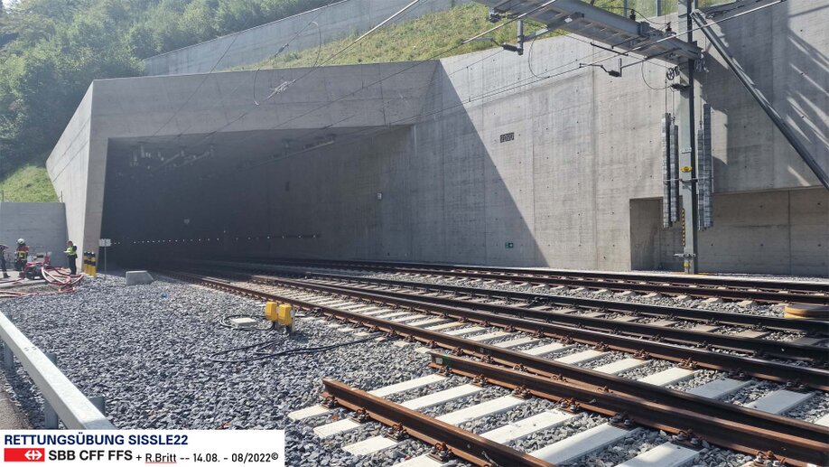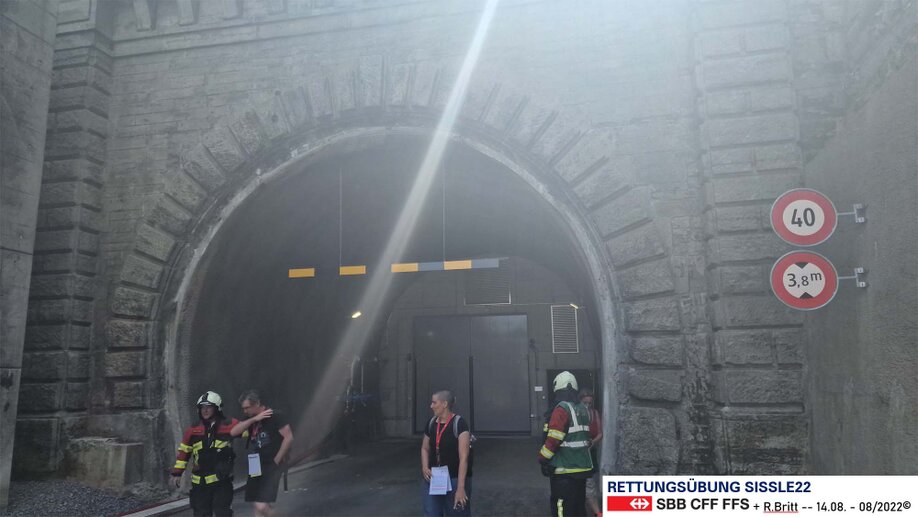 Nach dem Checking (08:15) wurden alle 800 Figuranten und 200 Normale Personen umfassend Informiert und es wurde erklärt um was es geht und wie die Übung abläuft. Ebenso wurden die Beteiligten Organisationen genannt. Einige Personen davon wurde nur Mitgeteilt das es eine Übung gibt. Aber wann und was für eine wurde, nicht mitgeteilt. Damit die Übung so realistisch wie möglich ist. Danach begab man sich gemeinsam an den Bahnhof Brugg auf das Perron 2-3 Wo dann der Übungszug eintraf. Danach musste man in die jeweilige gekennzeichneten Doppelstockwagen einsteigen. Um 11:00 fuhr dann der Zug los vor das Portal des Bözberg Tunnels. Da wurden dann ein paar Rangier Manöver gemacht. Nach weiteren 20 min. warten fuhr wir dann in die Mitte des Tunnels und da kam dann die Durchsage. Das man auf Platz bleiben muss. Da sie Ausserhalb des Zuges die Schadenplätze, Feuerwannen und Nebelmaschinen Platzieren müssen und in Betrieb nehmen müssen. Dies dauerte gut 20 min. Danach wurde im Zug gesamten Zug die Klimaanlage Abgestellt und die Tunnelbeleuchtung Ausgeschaltet. Kurz danach kam dann die Durchsage auf drei Sprachen. Das man sofort den Zugverlassen soll und den Anweisungen folgen soll. Man musste Ausserhalb des Zuges auf dem Schmalen Fussweg nach vorne Richtung Triebwagen laufen und da denn die Geleise Über queren und in den offenen Quer Stollen Richtung Versorgungstunnel (alter Bözberg Eisenbahn Tunnel gehen. Da hatte man dann die Wahl, ob man nach Links oder Rechts diesem Tunnel nach Aussen läuft. In beide Richtungen waren es 1,250 km. Ich lief Richtung Effingen. Da warteten die ersten Helfer und Einweiser. Die einem den Weg zu den Bereit stehenden Postautos zeigten.