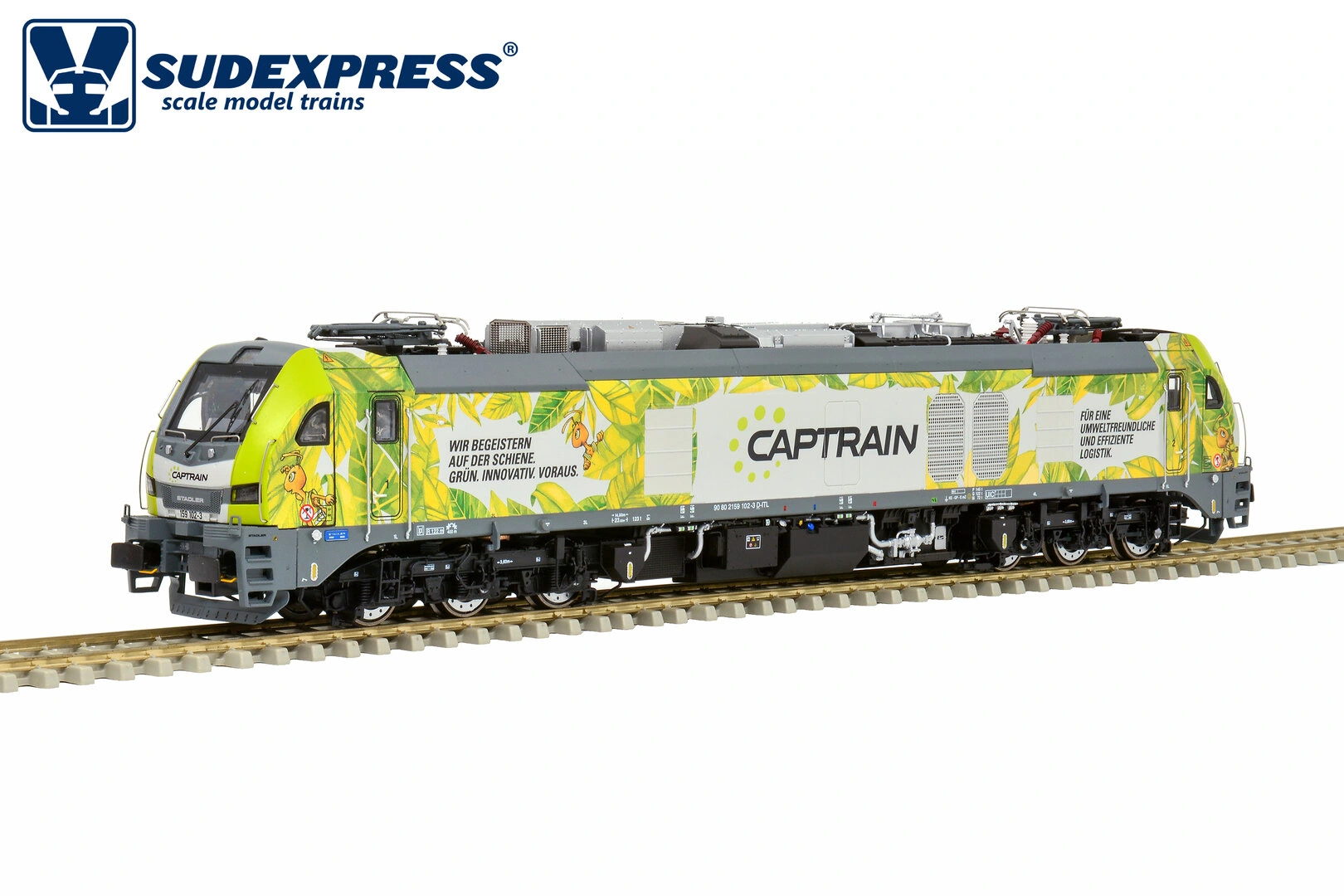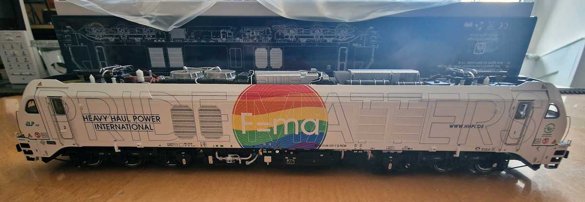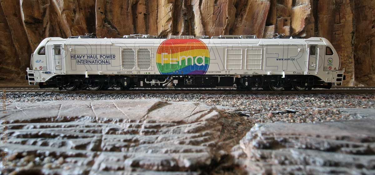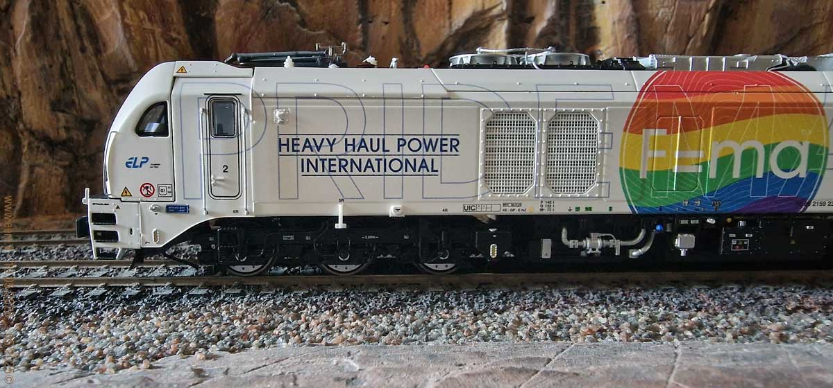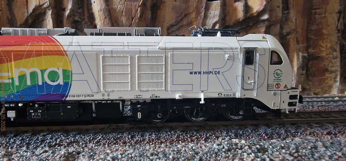 weisser Farbe und mit Angabe des Leasing-Unternehmens ELP auf dem Seitenwänden angeliefert und werden von verschiedenen EVU gemietet. Die 159 208 wurde mit einer Beklebung der Designerin Gudrun Geiblinger versehen und fährt seit April 2020 für das Unternehmen BSAS Eisenbahn Verkehr. Im Dezember 2020 folgten weitere drei Lokomotiven mit den Nummern 159 209 bis 211. Die 159 209 und 210 werden wie die 159 208, an die BSAS Eisenbahn Verkehr verleast. Sie besitzen ebenfalls eine Beklebung der Designerin Gudrun Geiblinger. Die 159 211 ist an die Starkenberger Gruppe verleast und in den Farben grau/grün/weiss beklebt.Bestellt am 30.03.2025, per O-Line Shop, bei EYRO Modellbahn GmbH. Preis ca. CHF 498.00.