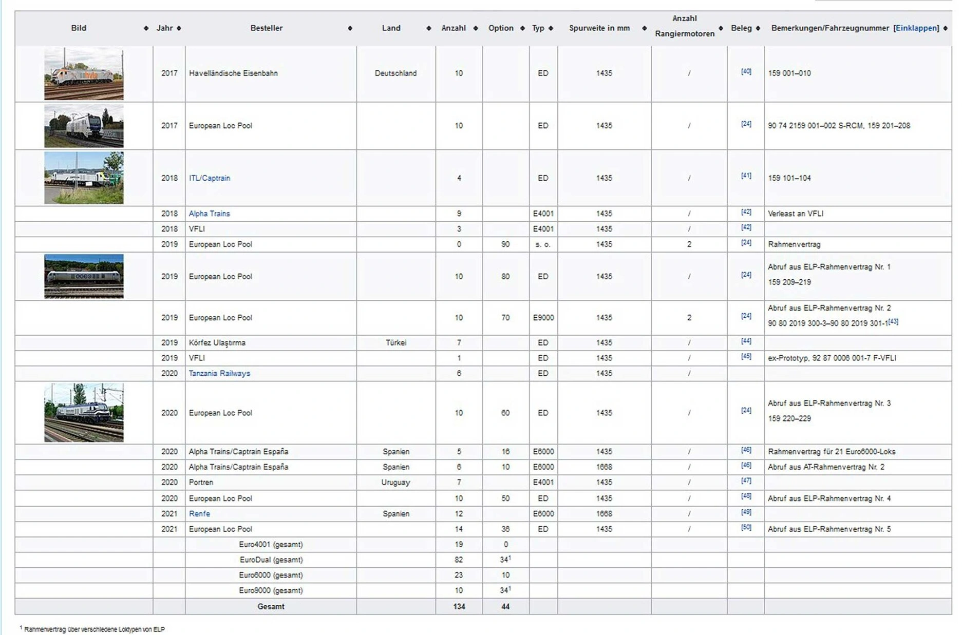 weisser Farbe und mit Angabe des Leasing-Unternehmens ELP auf dem Seitenwänden angeliefert und werden von verschiedenen EVU gemietet. Die 159 208 wurde mit einer Beklebung der Designerin Gudrun Geiblinger versehen und fährt seit April 2020 für das Unternehmen BSAS Eisenbahn Verkehr. Im Dezember 2020 folgten weitere drei Lokomotiven mit den Nummern 159 209 bis 211. Die 159 209 und 210 werden wie die 159 208, an die BSAS Eisenbahn Verkehr verleast. Sie besitzen ebenfalls eine Beklebung der Designerin Gudrun Geiblinger. Die 159 211 ist an die Starkenberger Gruppe verleast und in den Farben grau/grün/weiß beklebt.Vorbestellt am 19.10.2021, per E-Mail, bei Eyro GMBH. Preis ca. CHF 296.00.