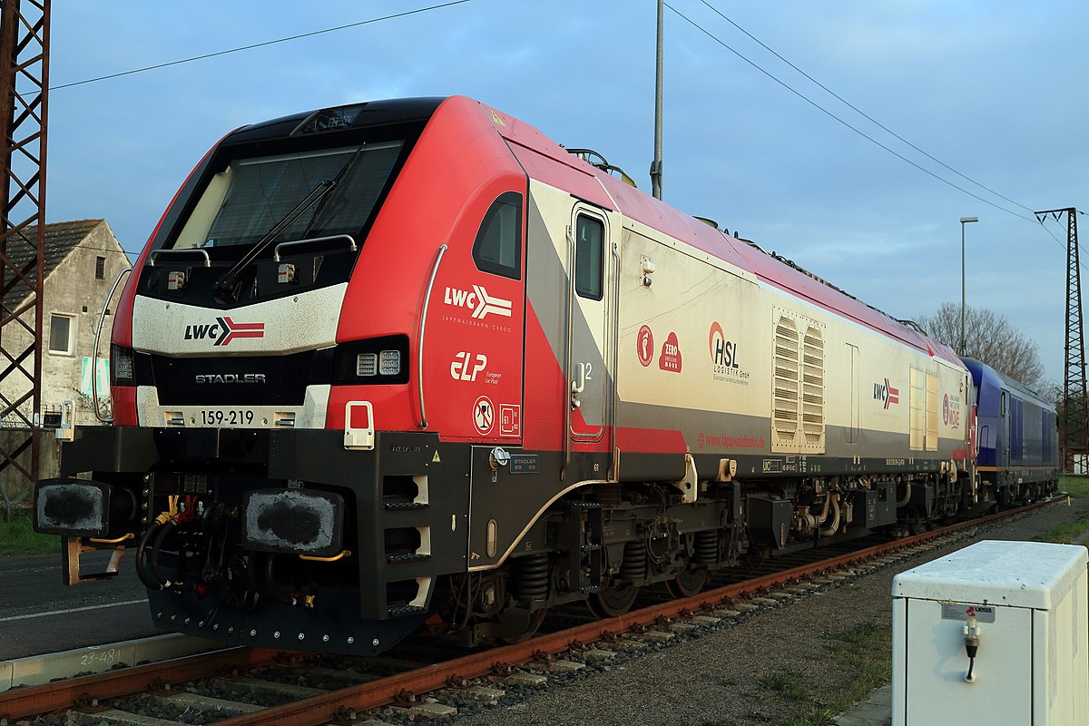 Z.B.: Stadler EuroDual dual mode locomotive in HHPI (Heavy Haul Power International GmbH) livery UIC Road number: 159 237-7 | |
