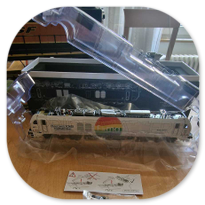 weisser Farbe und mit Angabe des Leasing-Unternehmens ELP auf dem Seitenwänden angeliefert und werden von verschiedenen EVU gemietet. Die 159 208 wurde mit einer Beklebung der Designerin Gudrun Geiblinger versehen und fährt seit April 2020 für das Unternehmen BSAS Eisenbahn Verkehr. Im Dezember 2020 folgten weitere drei Lokomotiven mit den Nummern 159 209 bis 211. Die 159 209 und 210 werden wie die 159 208, an die BSAS Eisenbahn Verkehr verleast. Sie besitzen ebenfalls eine Beklebung der Designerin Gudrun Geiblinger. Die 159 211 ist an die Starkenberger Gruppe verleast und in den Farben grau/grün/weiss beklebt.Bestellt am 30.03.2025, per O-Line Shop, bei EYRO Modellbahn GmbH. Preis ca. CHF 498.00.